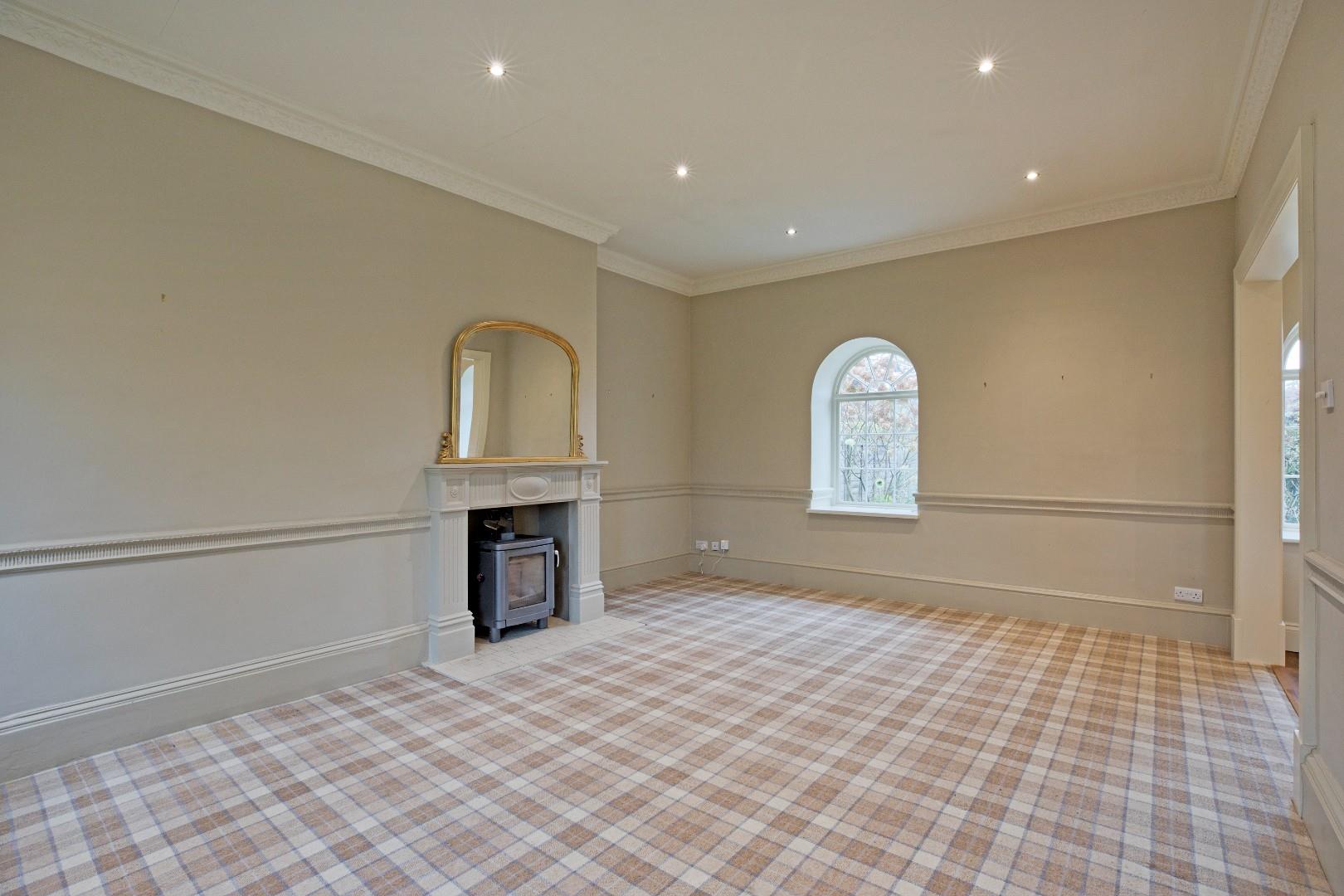 A good sized second reception room with three, double glazed, arched windows, again enjoying a lovely aspect over the garden, carpeted flooring and log burning stove on a stone hearth and with attractive, stone surround. Decorative dado rail and picture rail, downlighting. This room would work well as a dining room, if desired, or a second sitting room, one can imagine many happy times with family and friends here.