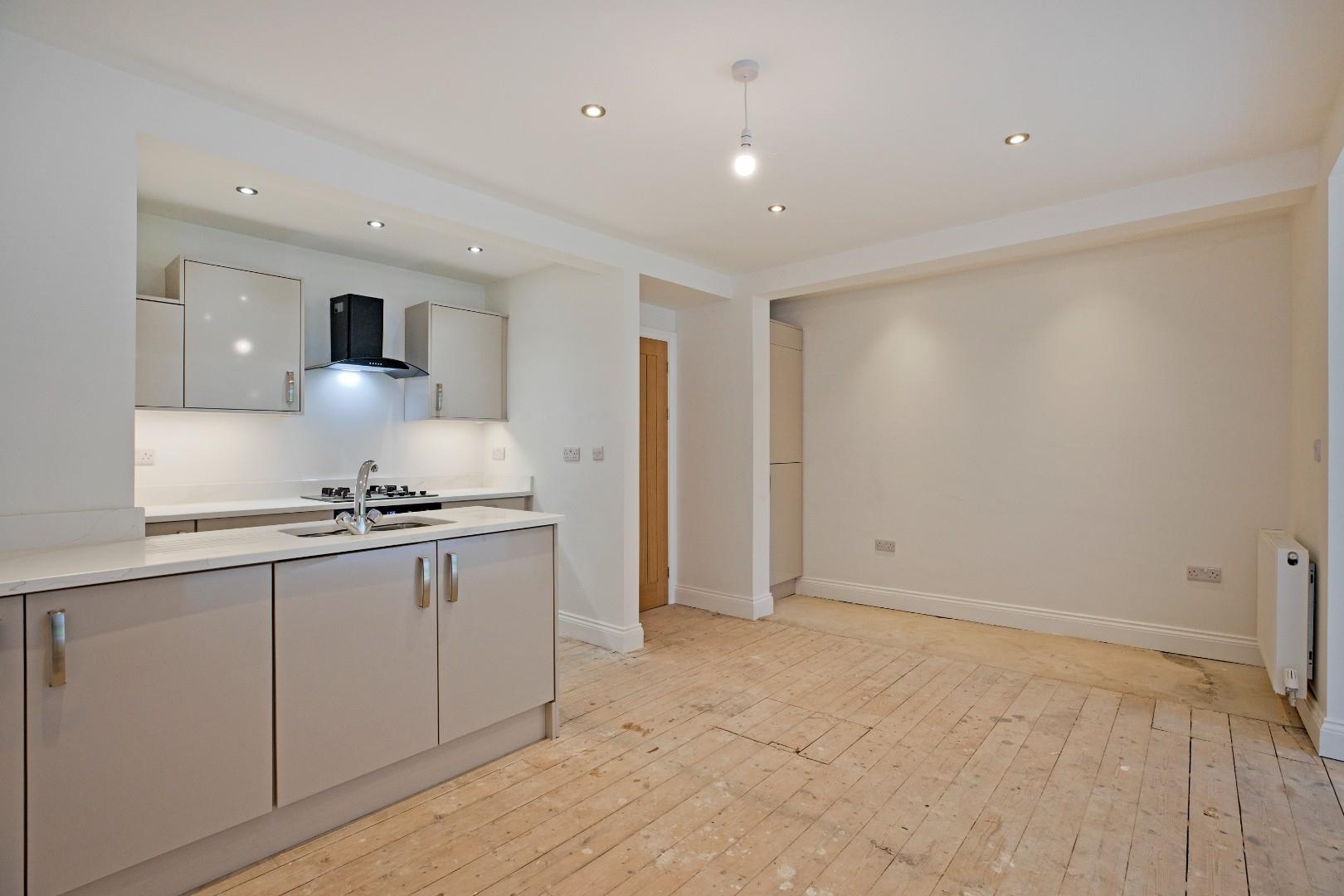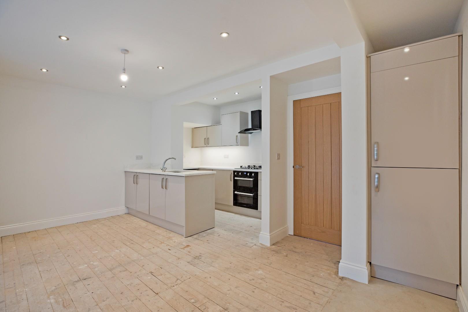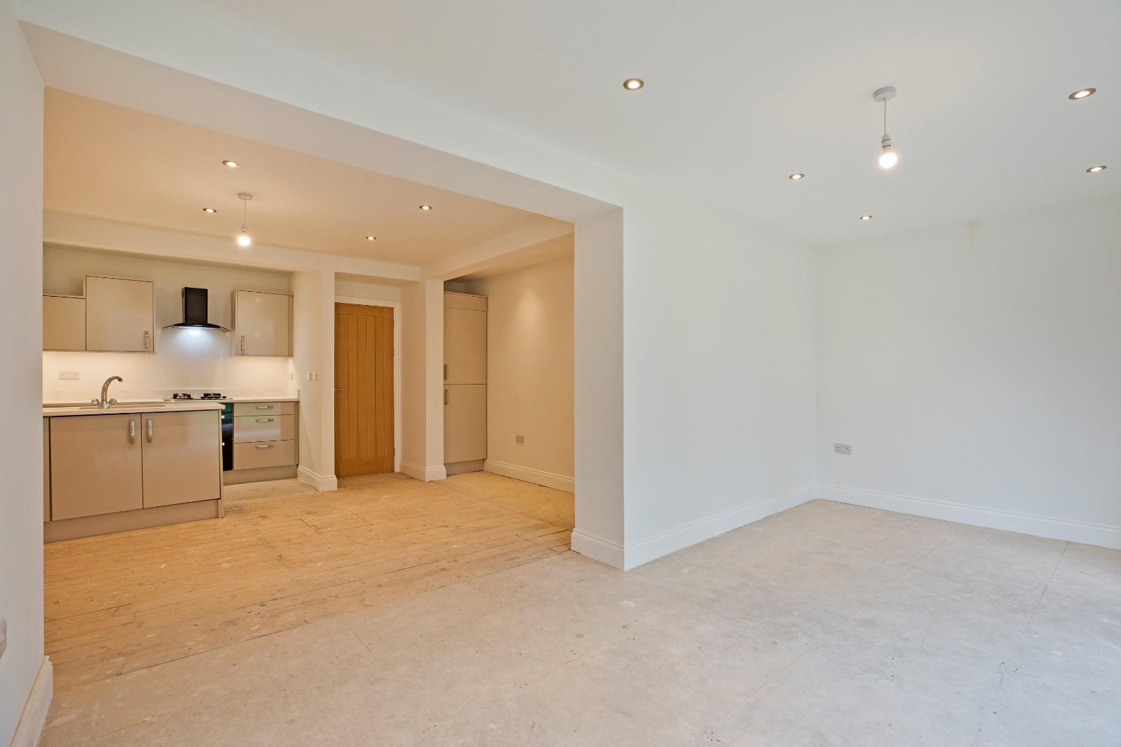 The property comprises an entrance hall with doors leading into the principal rooms including two double bedrooms, a small utility room, an immaculate, three-piece bathroom and the real hub of this home is the spacious open plan living dining kitchen with bifolds leading out to the private garden. The kitchen is fitted with high gloss cabinetry with a range of integrated appliances incorporating electric oven and hob, fridge freezer and slimline dishwasher. There is ample space for a dining table and comfortable furniture in the lounge area. The apartment benefits from a private, west facing lawned garden with beautiful patio area, perfect to sit and enjoy the afternoon and evening sunshine. There is off road parking available close by on a first come first served basis.