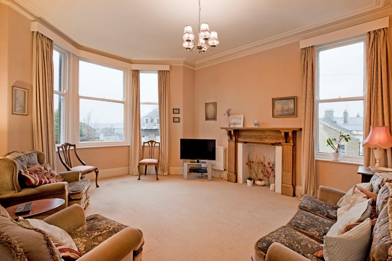 On the ground floor one enters into an entrance porch with a part glazed. timber door opening into a welcoming entrance hall. The high ceilings, coving and original timber balustrading to the staircase all add to the grandeur. A spacious lounge with large bay window enjoys wonderful, far reaching views, two further reception rooms provide spacious and comfortable living accommodation. A kitchen to the rear gives access to the garden via stone steps. On the lower ground floor one finds a most useful cellar area comprising a utility room, W.C. and two storage rooms. To the first floor a long landing with lantern light gives access to four bedrooms, the master being particularly spacious with windows to two elevations enjoying beautiful views across the valley, the house bathroom and a separate W.C. Outside the property enjoys lawned gardens to both front and rear, ideal for catching both morning and evening sun, unusual for a property so close to the centre of Ilkley. A single garage with electric door provides parking and excellent storage and a tarmacadam driveway provides parking for up to four vehicles.