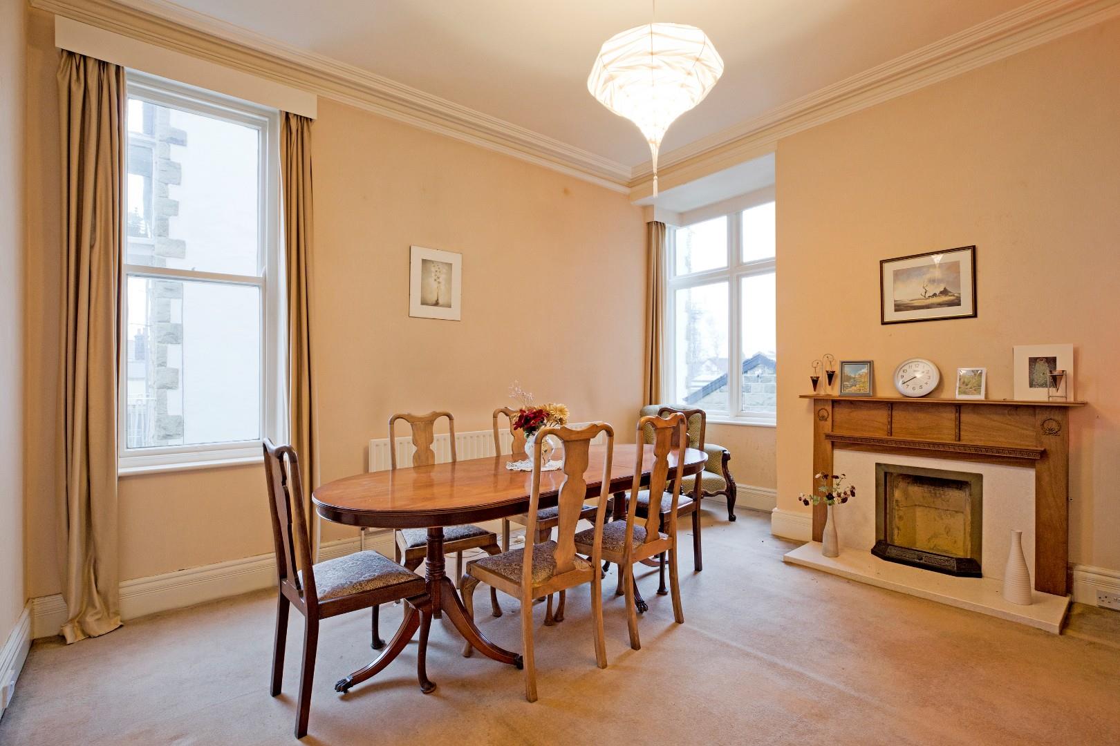 A generously proportioned lounge with large bay window with sash windows enjoying delightful, far reaching views. A further window to the side of the house allows further natural light. Carpeted flooring, radiator, fireplace with attractive timber surround. Deep skirtings, coving and high ceilings add to the lovely, spacious feel of this room.