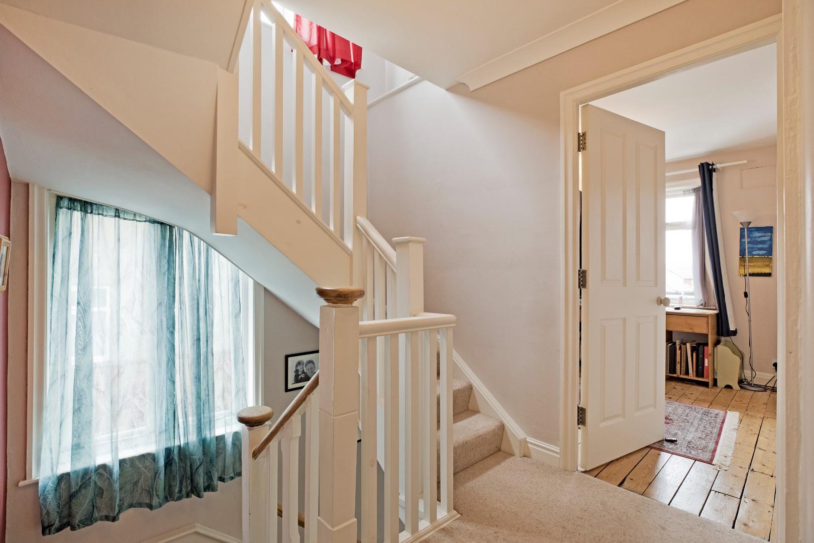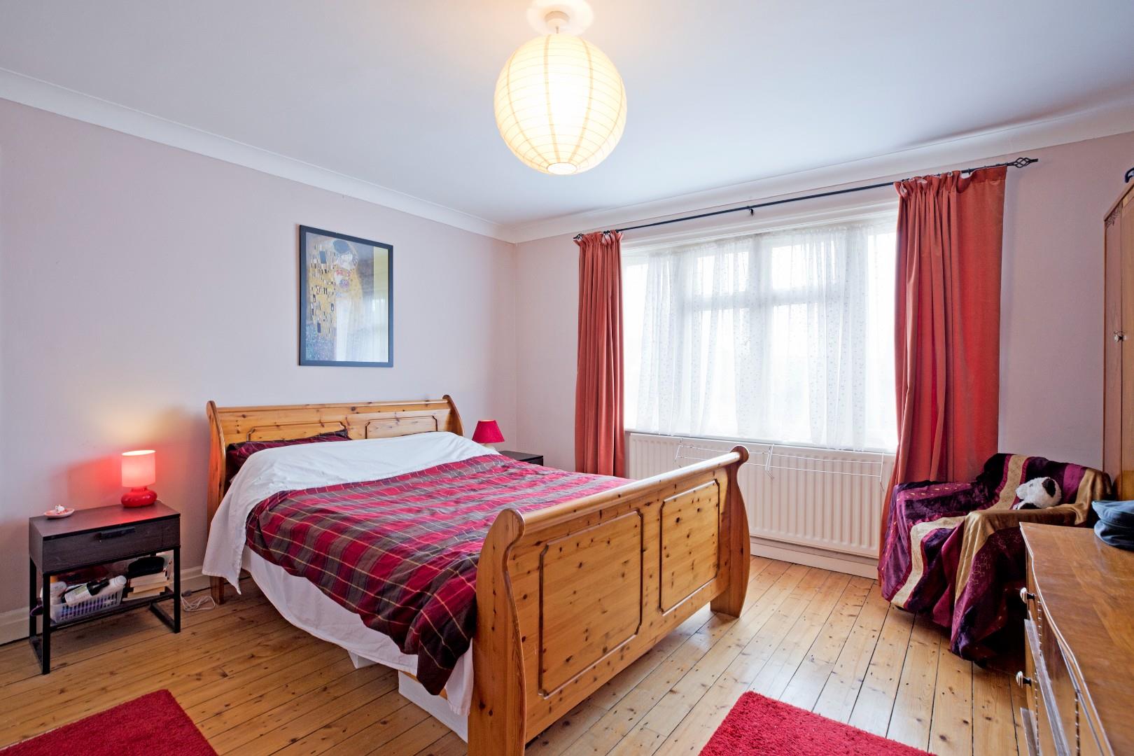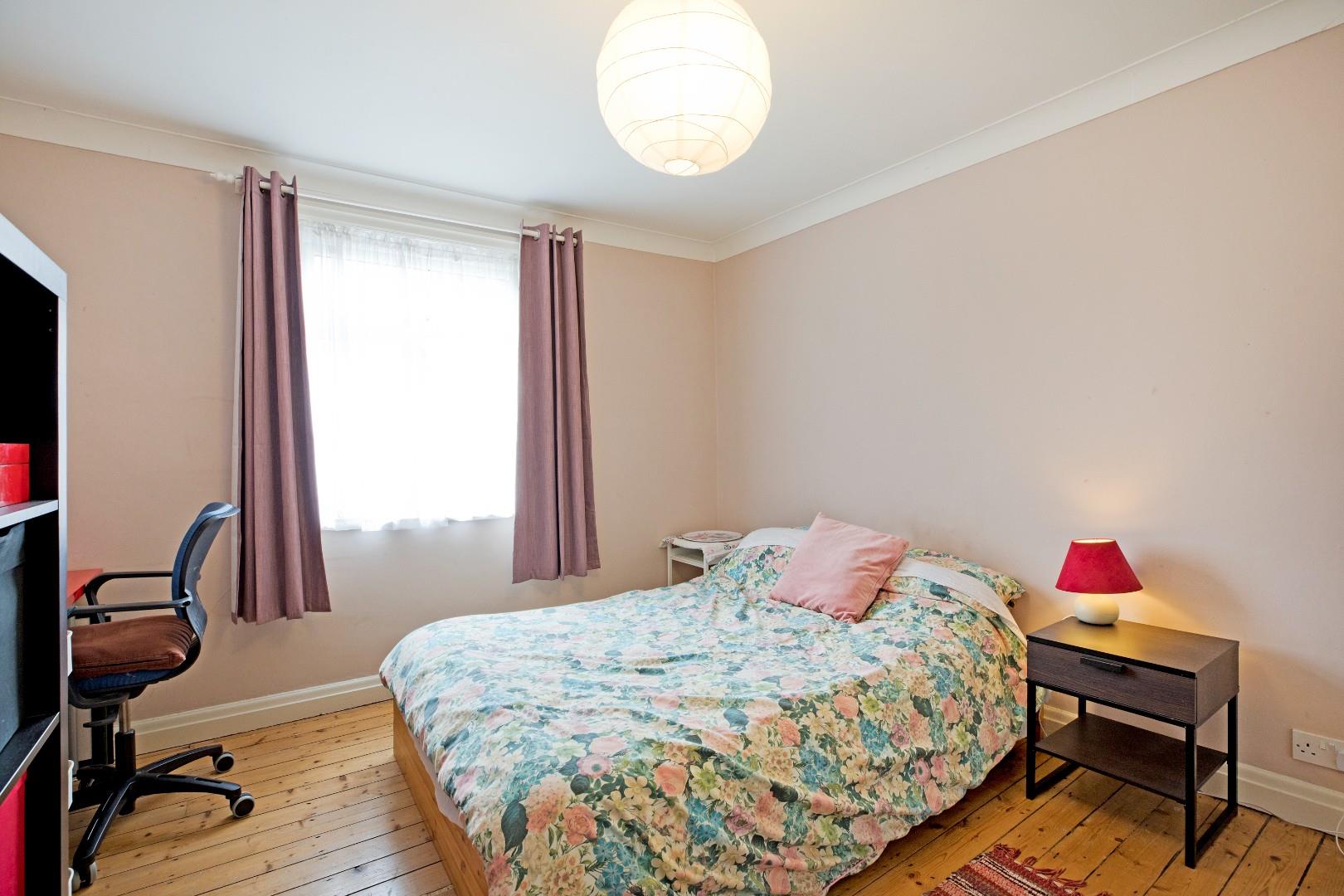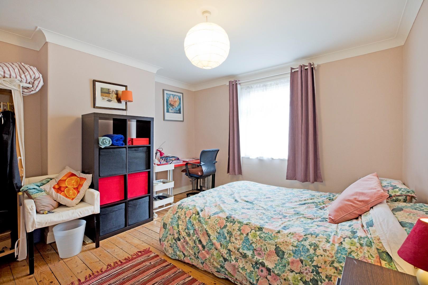 A further generous, double bedroom, this time to the rear of the property. A south facing window allows the light to flood in. Stripped flooring, radiator and cornicing.