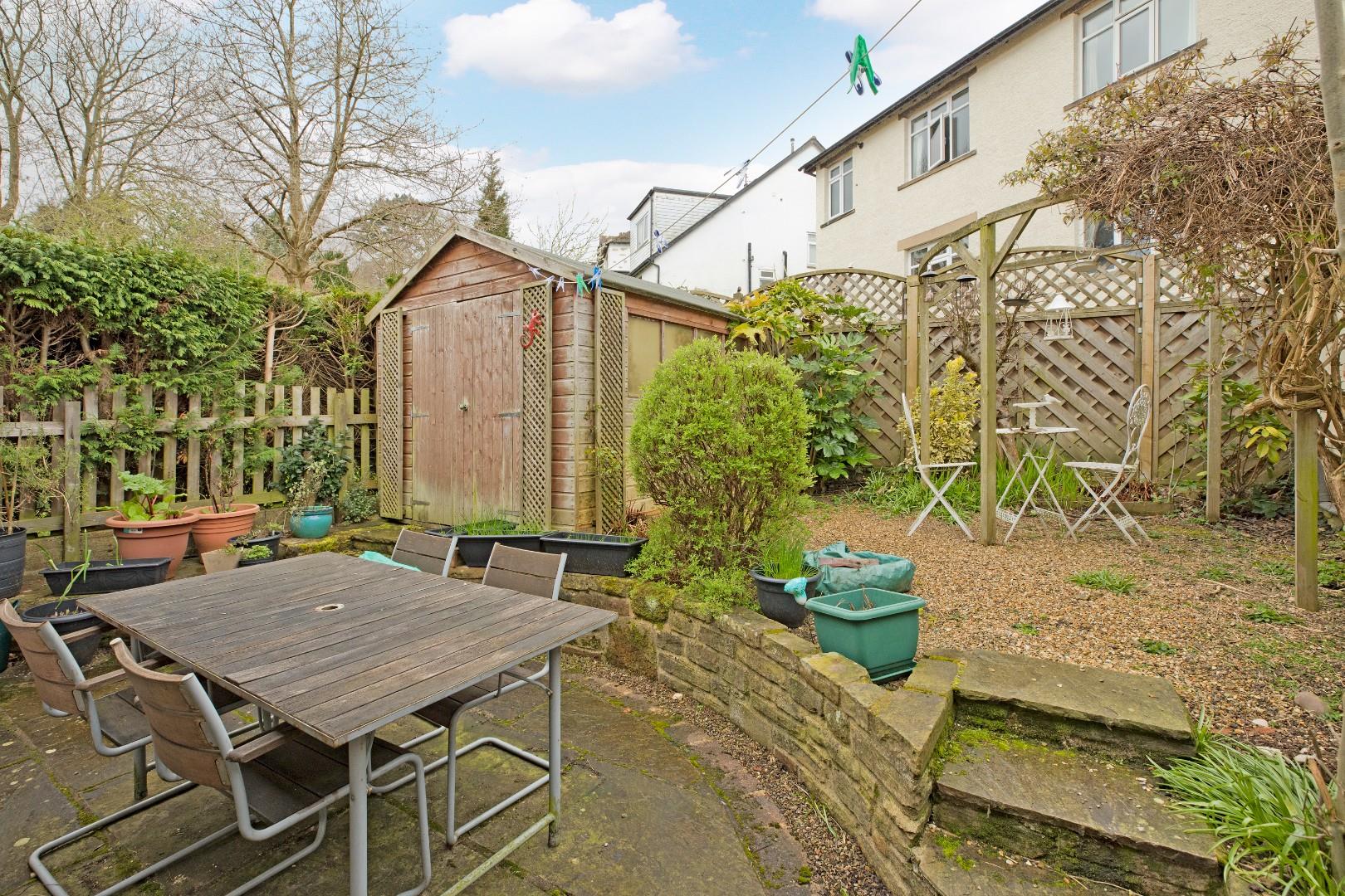 To the rear is a charming, south west facing, low-maintenance garden, with both a paved patio and also a gravelled seating area - ideal for al fresco entertaining. Fencing and hedging maintains privacy. A large, timber shed provides storage for all the family equipment. To the front the property is well set back from the road and the front garden is a gravelled, low-maintenance area with established shrubs and bushes maintaining privacy in front of the stone wall bordering the pavement. Wrought iron double gates lead onto a tarmacadam driveway.