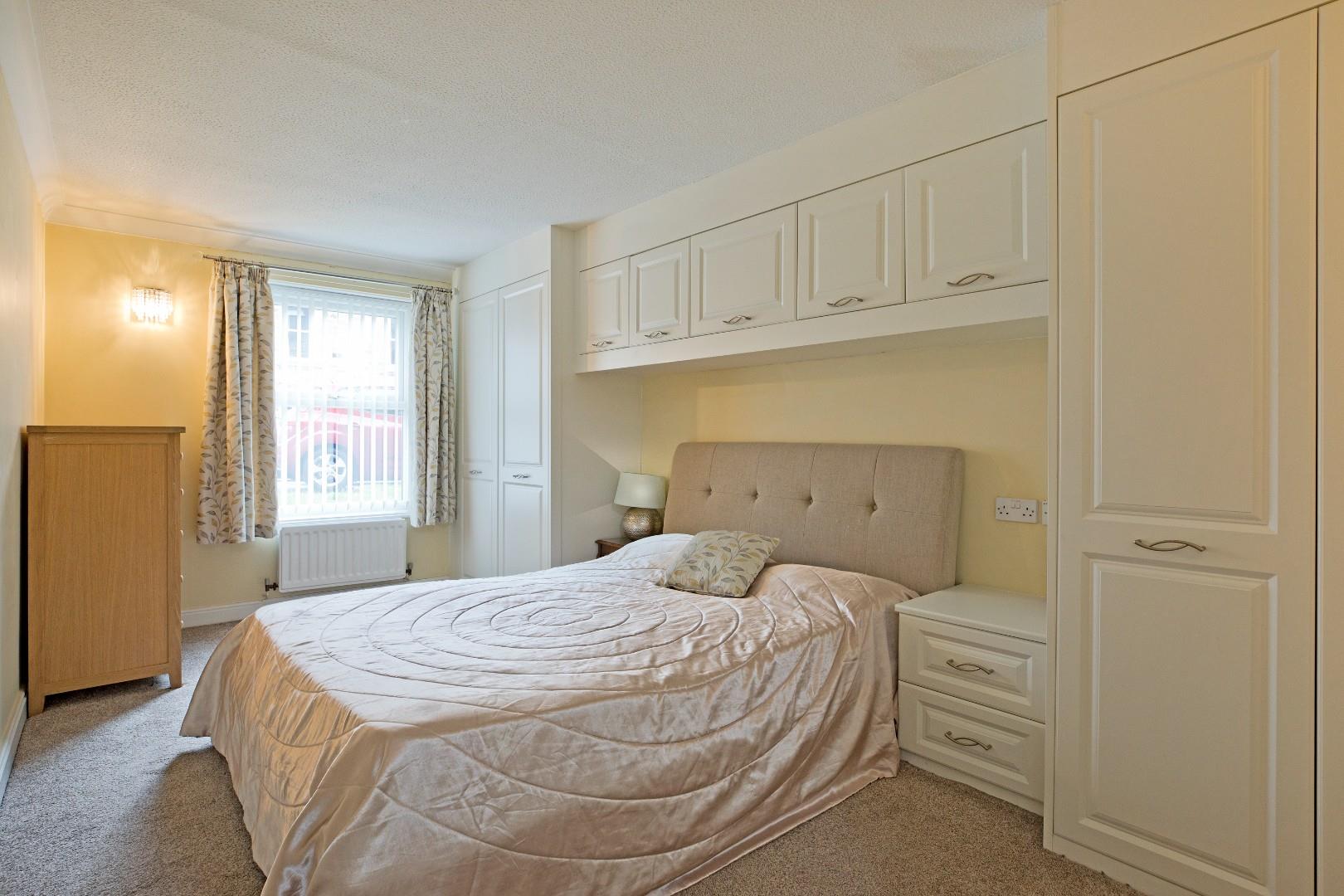 A lovely double bedroom with large, double glazed window, carpeted flooring and radiator. Fitted with a range of high quality wardrobes, cupboards and drawers providing excellent storage.