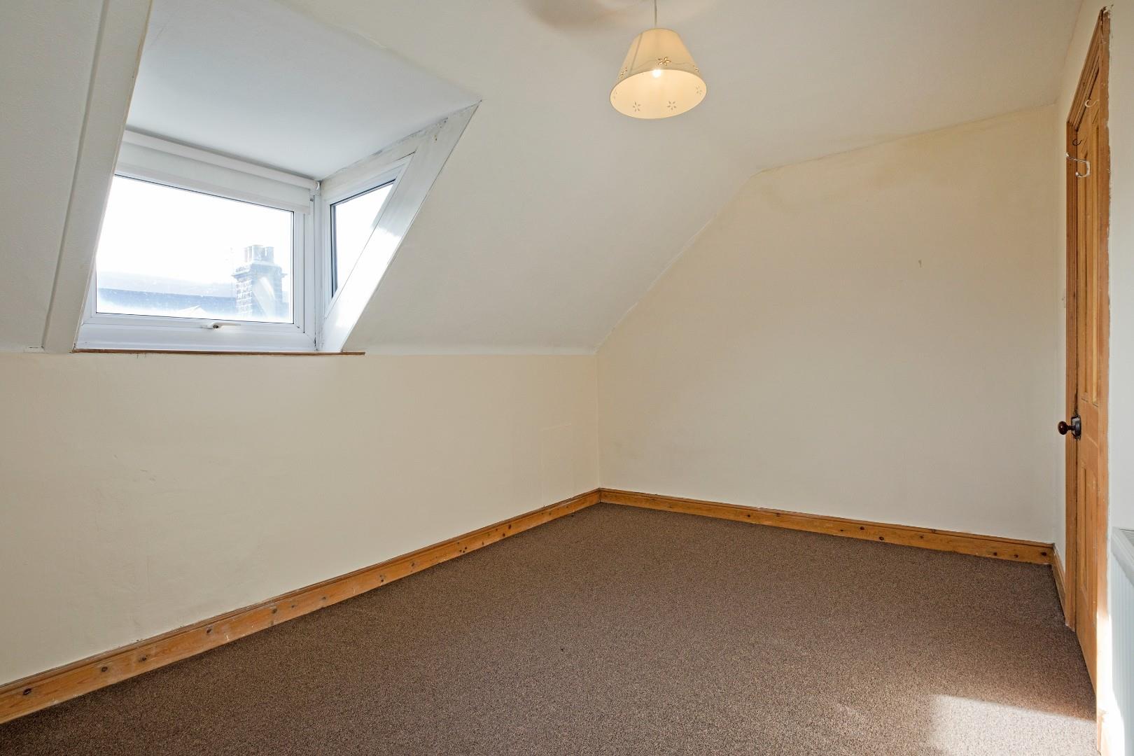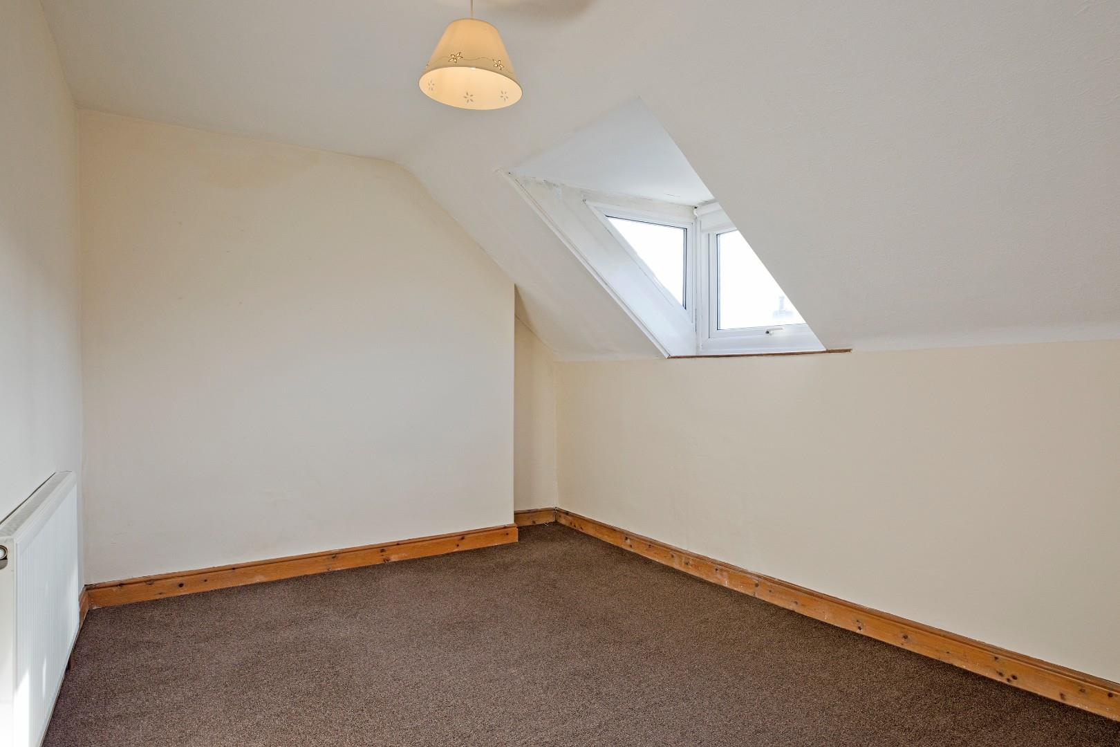 A large single bedroom to the rear of the property with carpeted flooring, radiator and Velux.