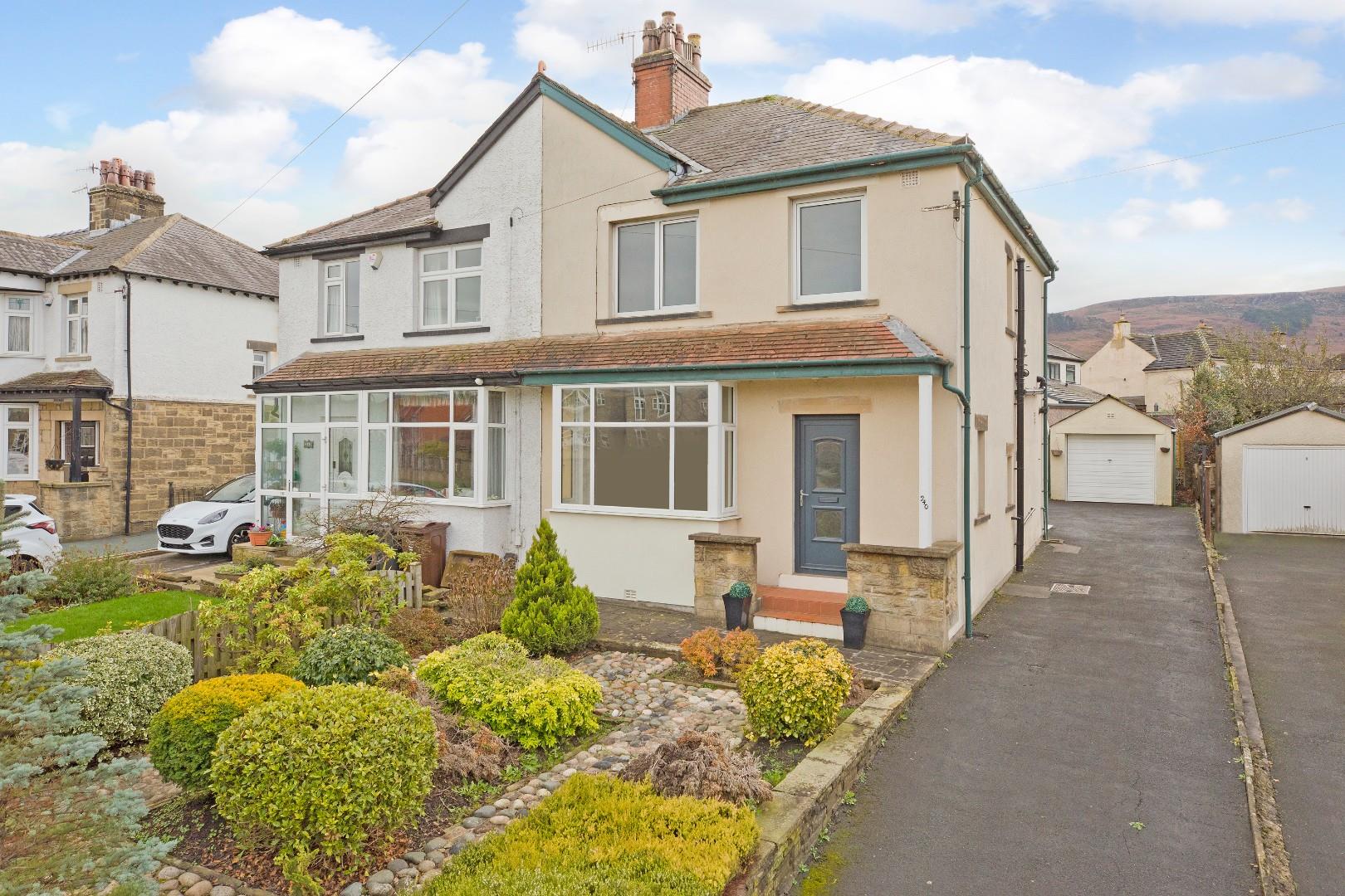 With no onward chain a very well presented, recently renovated, three bedroom semi detached house with a beautiful, open plan dining kitchen, garden room, en suite facilities to master bedroom and a level, low maintenance South facing garden. Enjoying driveway parking, a garage and views up to Ilkley Moor this really is a great family home in ready to move in condition.