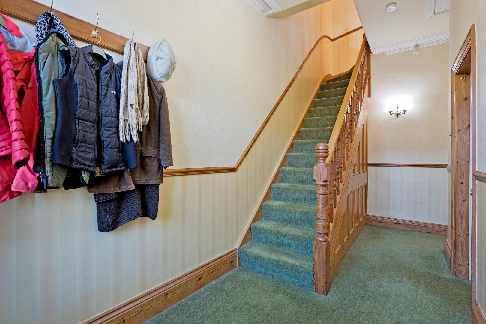 A return original, carpeted staircase with timber balustrade leads up to the first floor landing. Doors open into three bedrooms, two being generous doubles, and the traditional style house bathroom. A door opens to a staircase leading to the second floor bedroom.