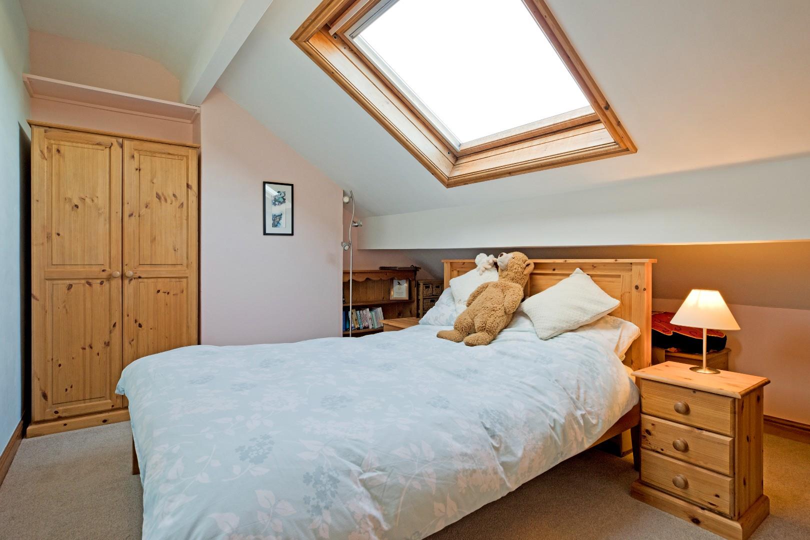A good sized, double bedroom to the rear, south facing elevation. Velux window with fitted black out blind, under eaves storage, carpeting and radiator.