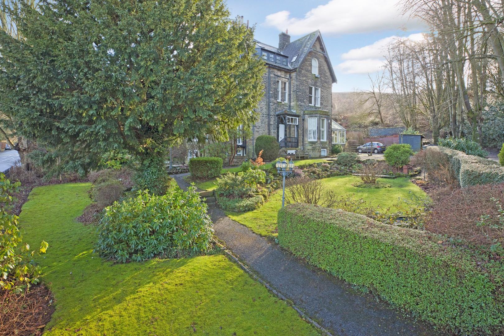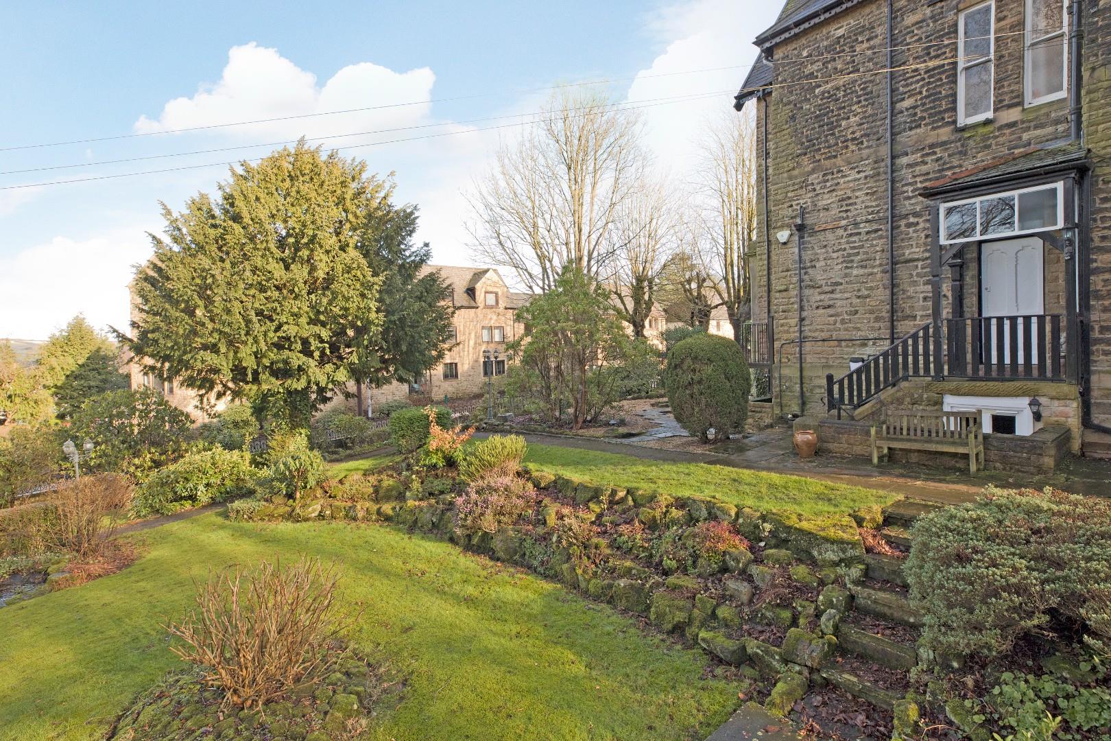 A carpeted staircase with handrail leads to Apartment 2, which is on the first floor of this beautiful building. One enters into a hallway giving access to the principal rooms including a spacious lounge with sash windows enjoying delightful views, two bedrooms, one being a good sized double with recessed wardrobe, a shower room and separate W.C. The lounge leads into a second reception room, currently arranged as a dining room, which one could potentially open up into the small kitchen to create a lovely breakfast kitchen. The apartment enjoys a wonderful, elevated position with long distance views and views of Ilkley Moor, which is right on the doorstep. Outside the property benefits from the use of a beautiful, manicured communal garden where a timber shed provides storage for Flat 2. To the rear there is a single garage belonging to the apartment with parking available in front.