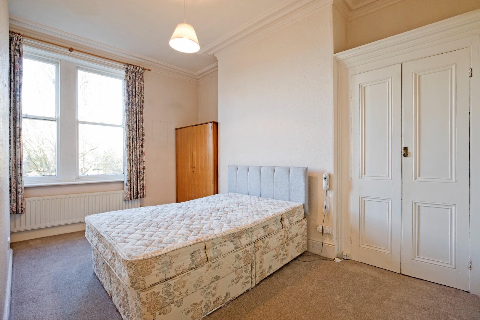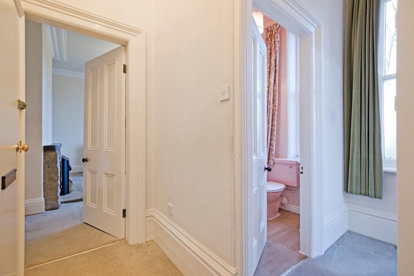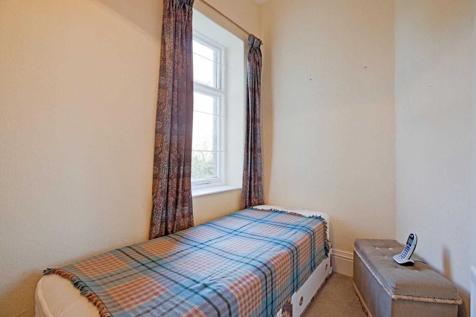 A good sized double bedroom with carpeted flooring, radiator, fitted wardrobe and two sash windows enjoying moor views. The high ceilings accentuate the feeling of space.