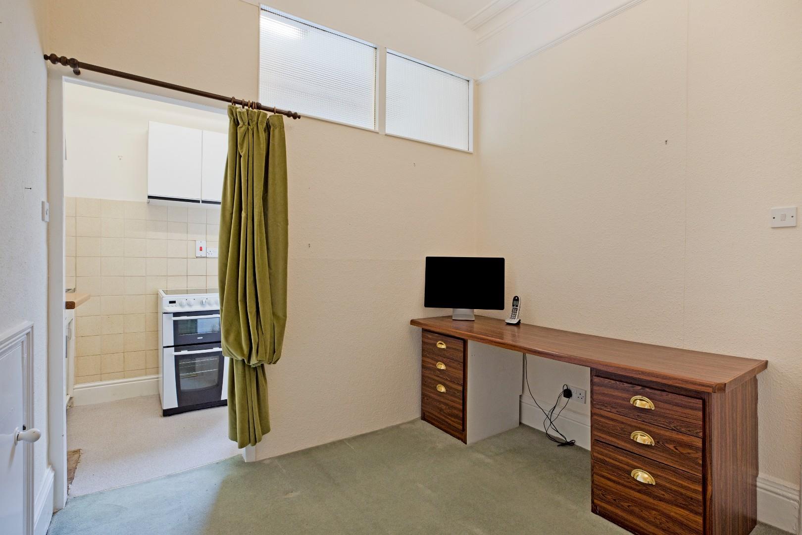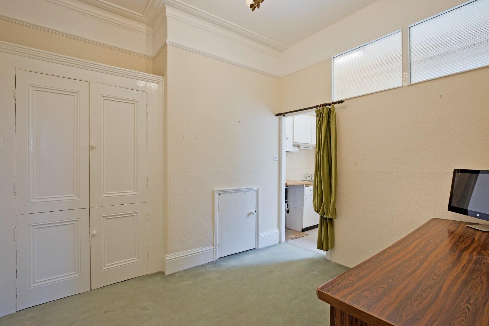 A spacious lounge with carpeted flooring, radiator and two sash windows allowing ample natural light and enjoying lovely views over the communal garden. A stone fireplace and hearth is a focal feature to this room, currently housing an electric fire. There is ample room for comfortable furniture. Door into: