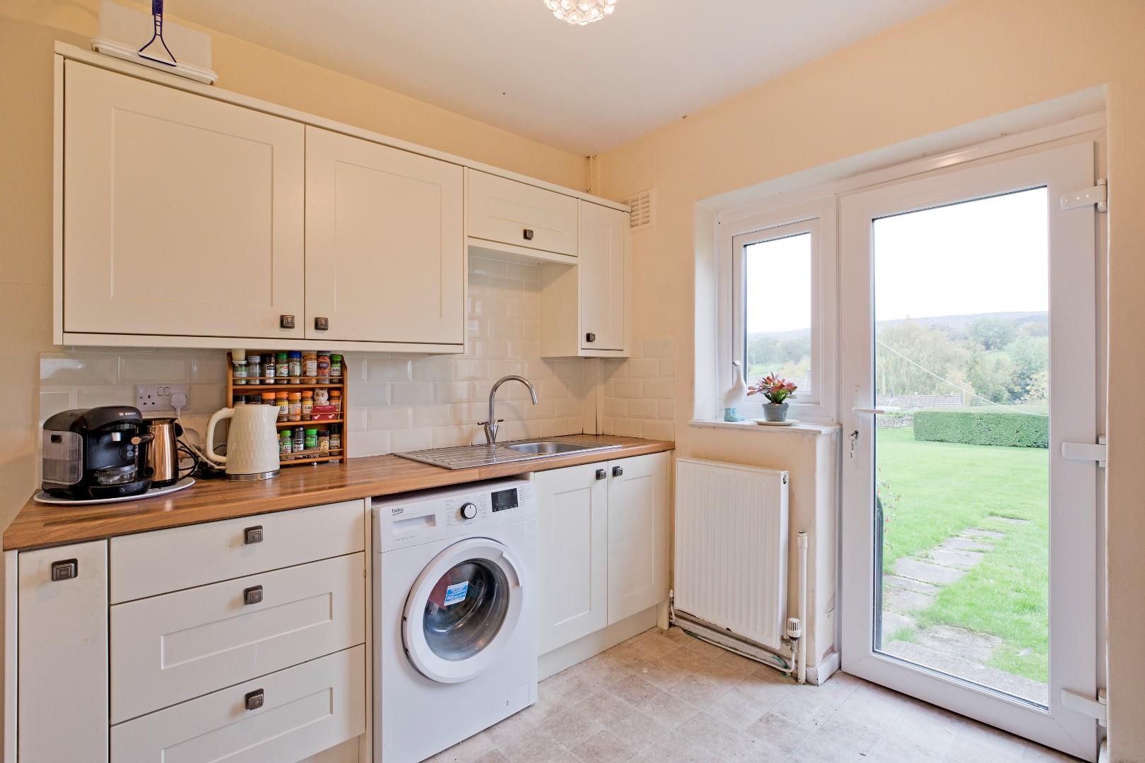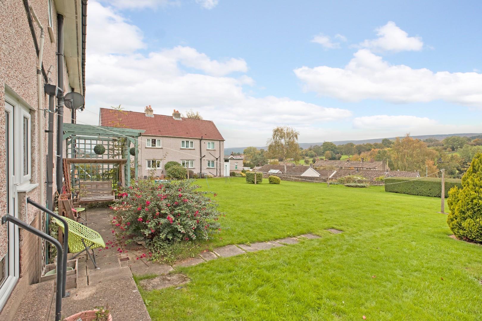 A timber garden gate opens to a pathway leading to the private entrance door of the apartment. The accommodation comprises a spacious hallway, Shaker style breakfast kitchen with access to a patio and rear garden, comfortable lounge with bay window, two, good sized double bedrooms, both with fitted furniture, and a three-piece house bathroom. Outside the property enjoys a private, lawned foregarden with attractive borders and a patio area with pagoda to the rear with the use of a large, lawned communal garden. A brick built external store provides storage. The views across open countryside up to Ilkley Moor are stunning. The apartment is within walking distance of the village amenities and close to delightful walks in the surrounding countryside.