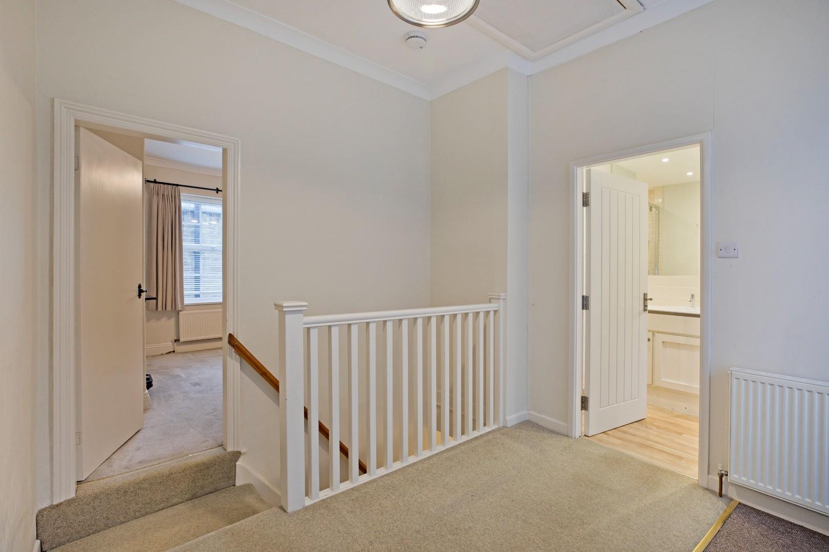 A carpeted staircase with handrail and timber balustrading leads to a great open space with carpeted flooring, radiator, double glazed window and half glazed timber door leading out to the private patio area. A hatch with fitted, pull down ladder gives access to the boarded loft area. This space would work well as a home office or snug, if desired, having a Velux and power.