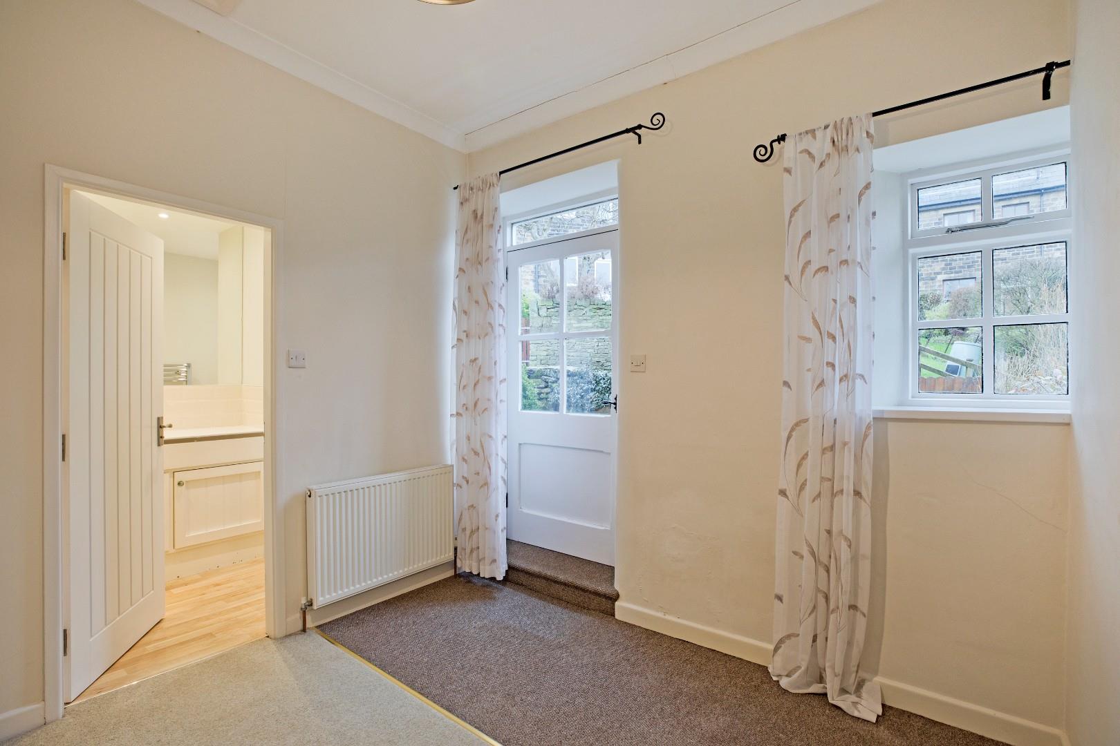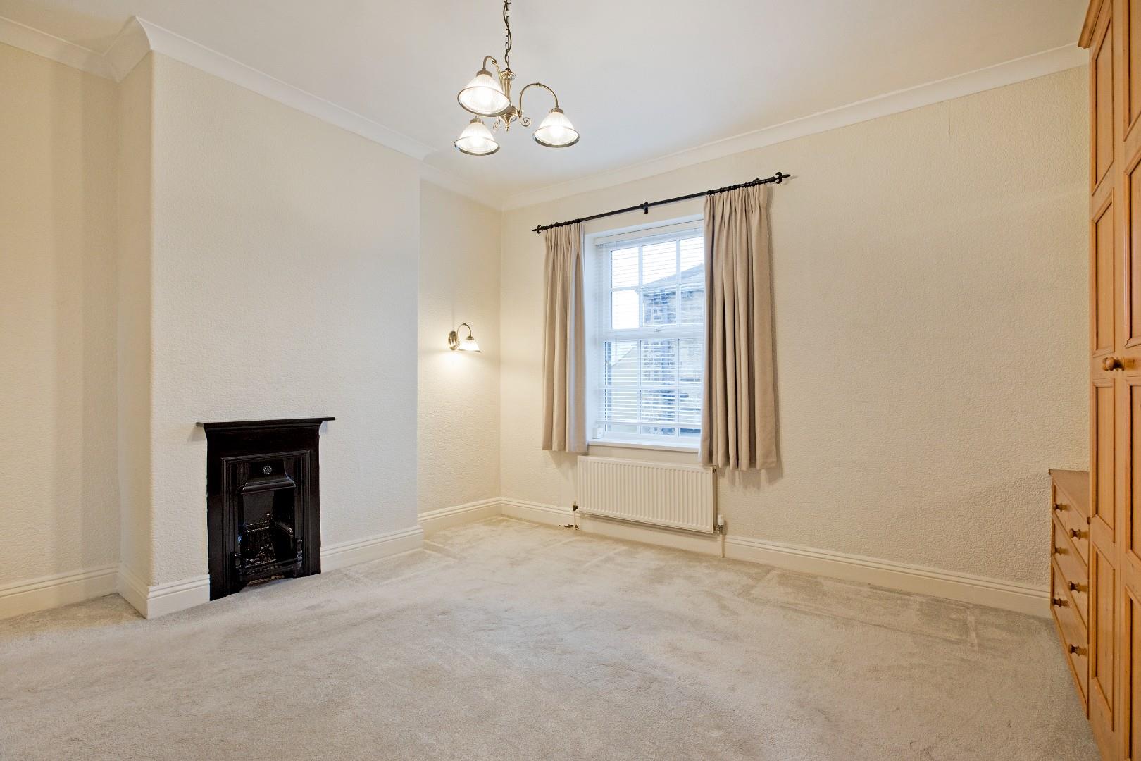 A spacious double bedroom to the front of the property with carpeted flooring, radiator and double glazed window overlooking Stockinger Lane. Tall fitted wardrobes and drawers provide excellent storage. Original, cast-iron fireplace.