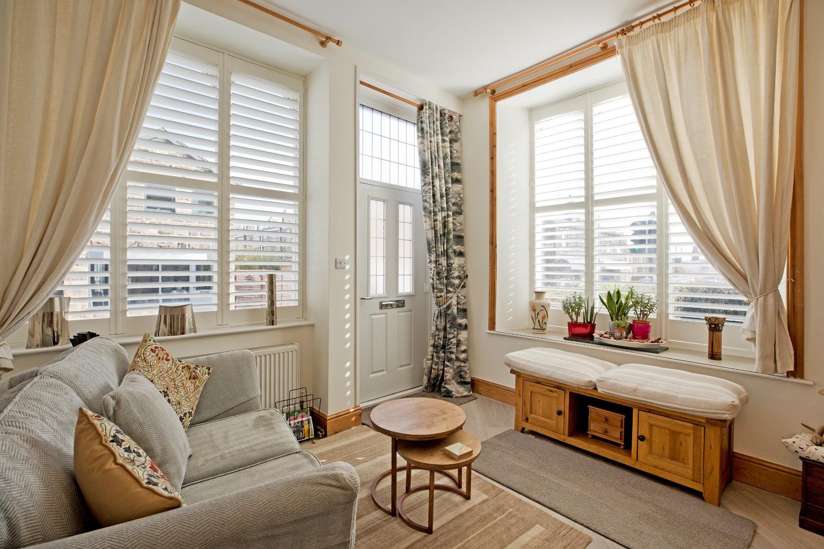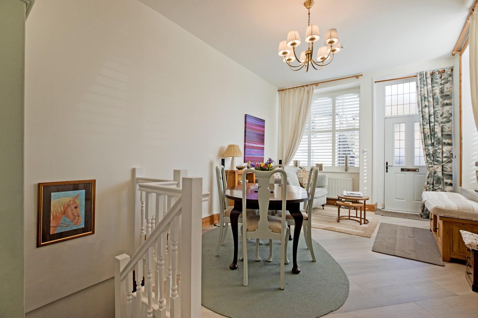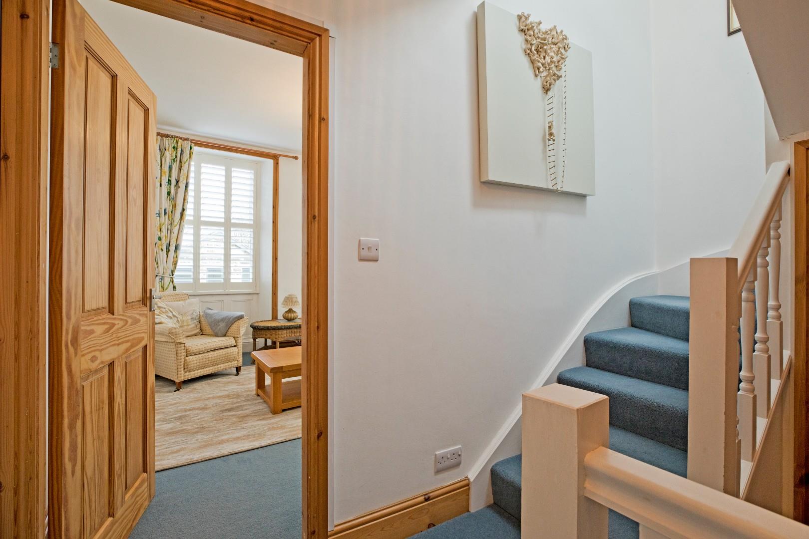 A carpeted staircase leads to the first floor landing where doors open into the beautiful, four-piece house bathroom and a dual aspect double bedroom, currently arranged as a lounge. A further staircase leads to the second floor, useful storage cupboard.
