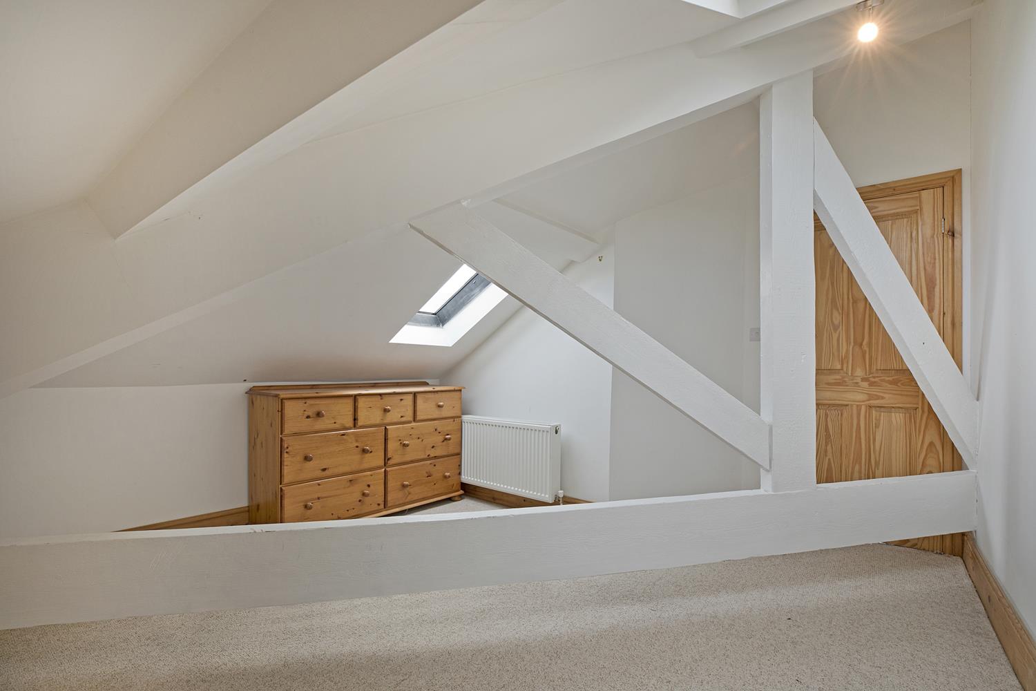With carpeted flooring, radiator and two rooflights. Exposed, painted beams. This room provides excellent storage and could possibly be configured to create a bedroom.