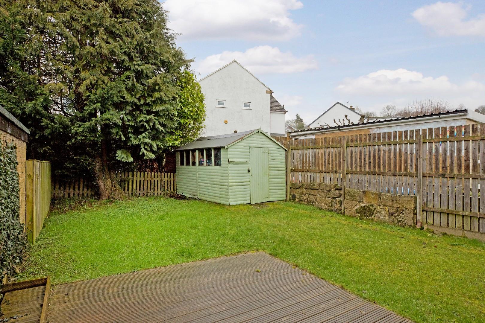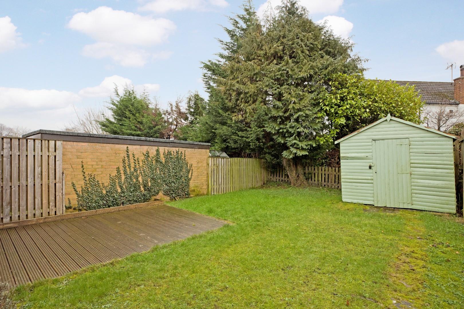 The front garden is laid to tarmacadam to provide further driveway parking and bordered by hedging for privacy. The rear garden is laid to level lawn and being south facing is very sunny. Fencing maintains privacy. A large, timber shed provides useful storage