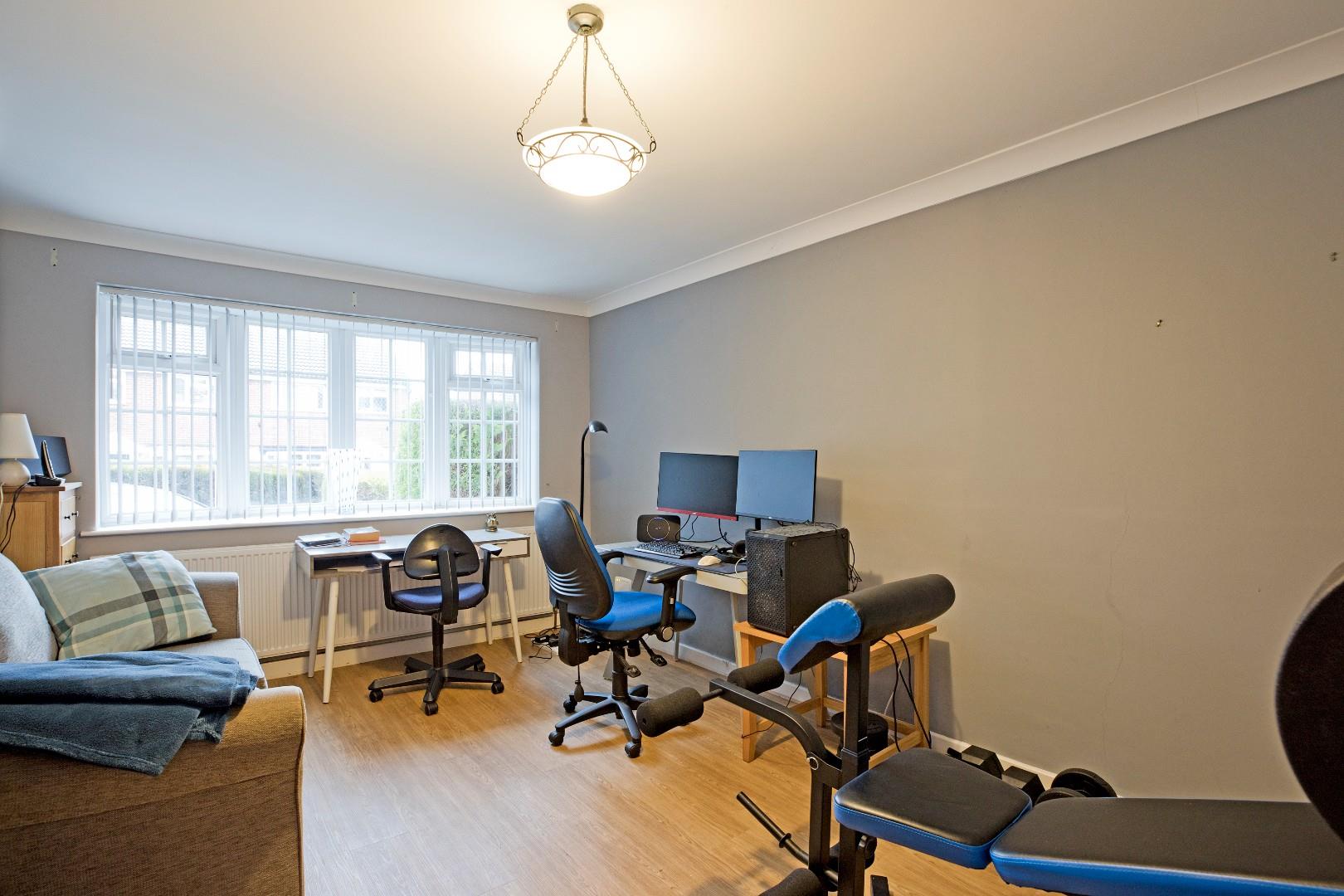 A further generous lounge to the front elevation ensures that everyone in the family can find their own space. A multi-paned, splayed bay window makes for a bright atmosphere and offers a pleasant outlook over the front garden and this charming cul-de-sac. Coving, luxury vinyl tile flooring and radiator.