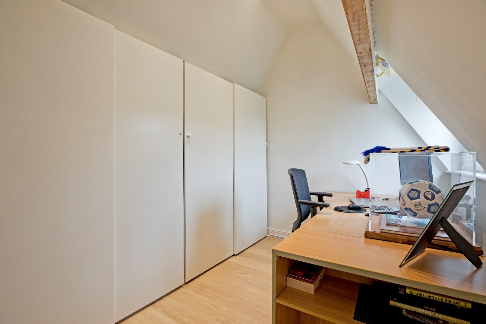 A fourth bedroom, currently used as a study. Fitted wardrobes, laminate flooring and radiator. Far reaching countryside views through the UPVC double-glazed window. A walk-in cupboard provides additional storage.
