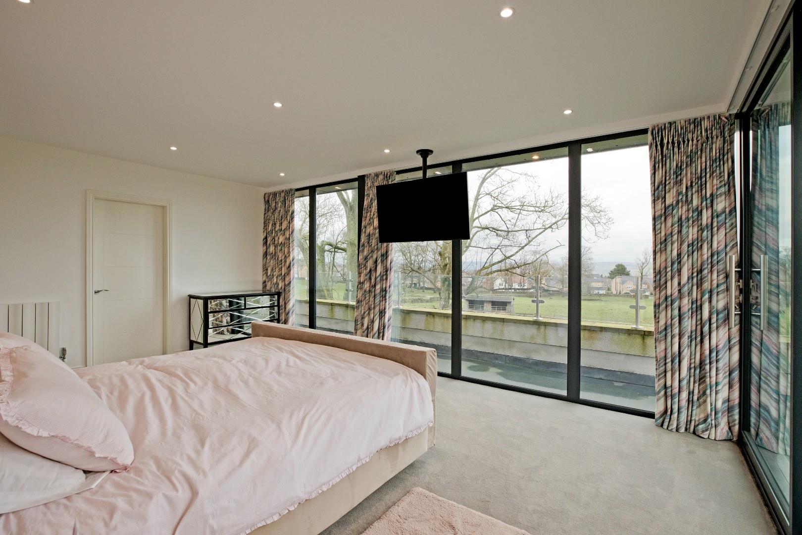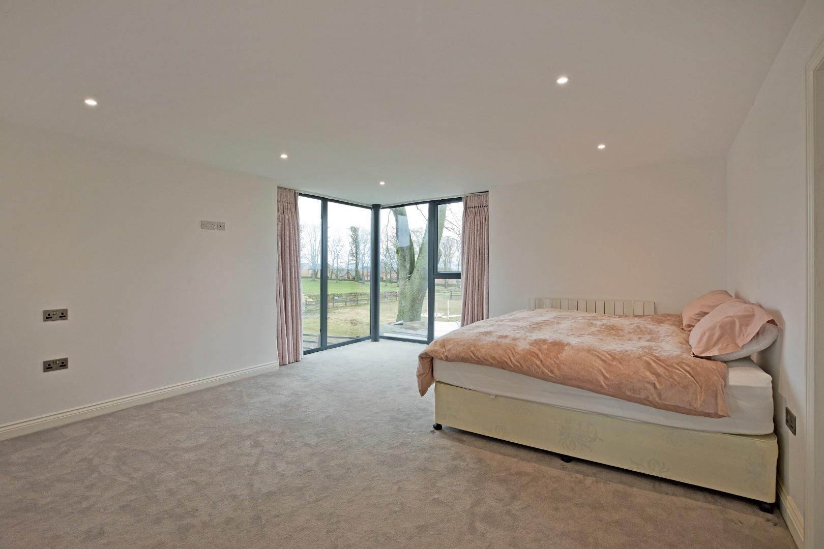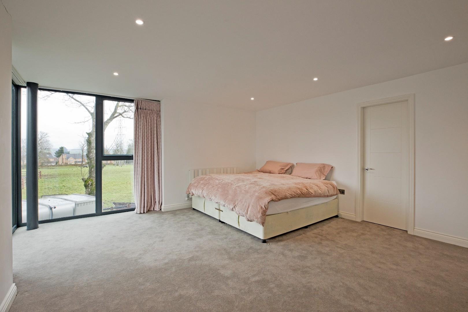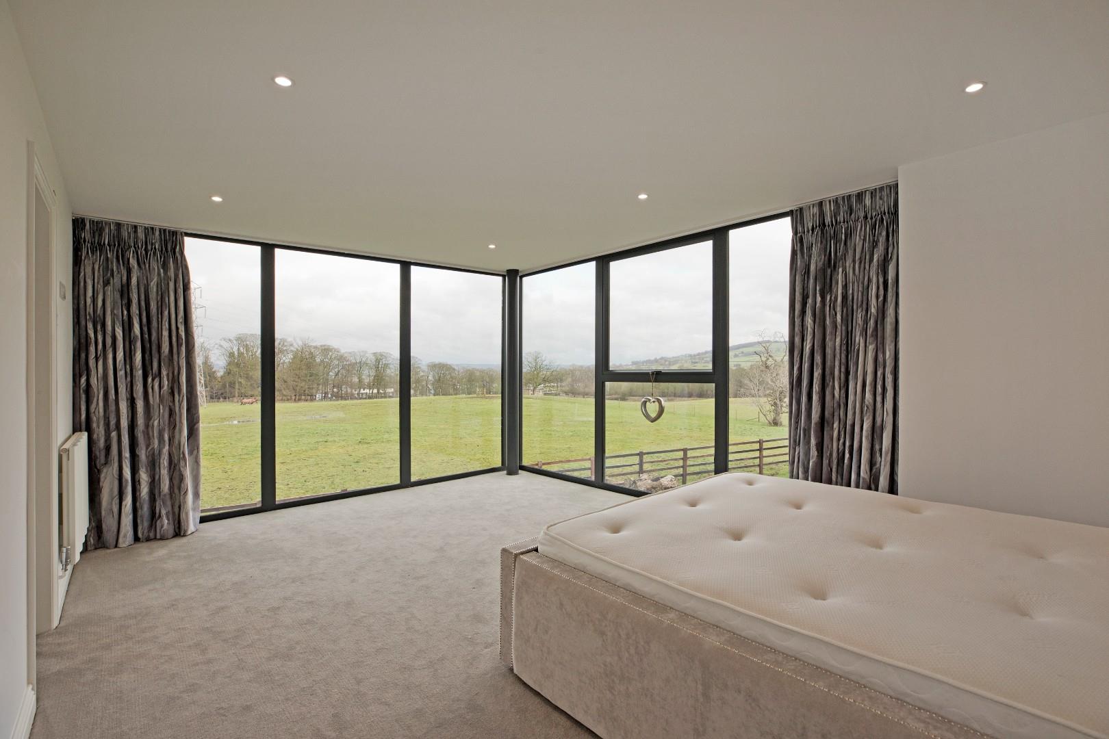 A stunning double bedroom with tall, double glazed windows to two elevations allowing an abundance of natural light and enjoying a fantastic, open view across countryside. Carpeted flooring, recessed spotlights, radiator. Door into:
